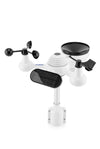 Czujniki w zestawie: czujnik wielkości opadów, czujnik temperatury, czujnik prędkości wiatru, czujnik wilgotności gleby
